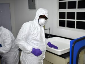 Training at the new St. Kitts Crime Lab, Forensic Department Laboratory.